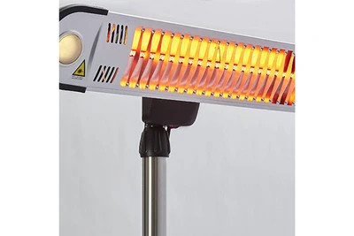 Parasol chauffant PARMA- Favex Caractéristiques techniques : - Surface de chauffe : 6-8 m² - Puissance : 2100 W - Autonomie : 5000 H - Position de chauffe : 1 - Commande : Manuel - Télécommande - Indice de protection : IP55 - Dimensions (LxPxH) : 76x46x220 cm - Certification : Certifié Européen - Garantie : 2 ans
